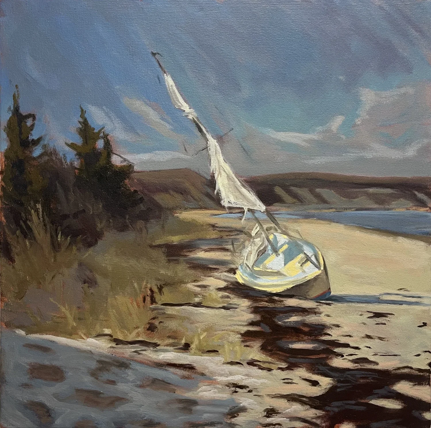 Mid-morning Mast on Sagamore Beach, 20 x 20’’, January 2025, oil on canvas